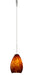 The Pera 6 is a curvy bell-bottomed shape, that fits nicely into any contemporary design. Our Amber Cloud glass is full of floating, vibrant warm tones that range from light gold to deep amber. When lit, the humid color palette illuminates to exude a harmonious display. This dcor is created by rolling molten glass in small bits of brown hues called frit. The result is a multi-layered blown glass, where frit color is nestled between an opal inner layer and a clear glossy outer layer. This blown glass is handcrafted by a skilled artisan, utilizing century-old techniques passed down from generation to generation. Each piece of this dcor has its own artistic nature that can be individually appreciated. The 12V cord pendant fixture is equipped with a 10` coaxial cord set with Teflon jacket, quick connect jack and a Besa Rail Adapter. These stylish and functional luminaries are offered in a beautiful Satin Nickel finish.