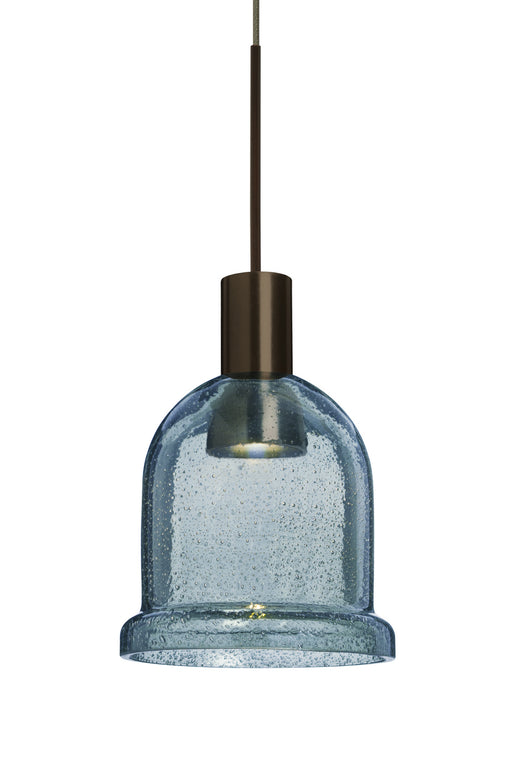 The Kiba Blue Mini Pendant is a transitional design composed of a transparent blue glass Bell, with an interesting bubble pattern blown randomly th...