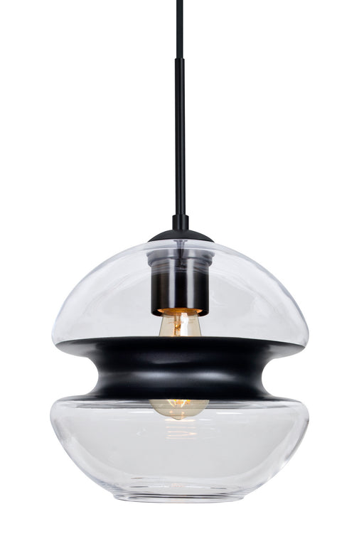 The transitional Hula 8 Pendant employs an impressive European glass shade with center radiused Black band dividing an upper and lower transparent ...