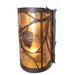 Invite the beauty of nature into your home with a charming wall fixture featuring metal accents designed as Pinecones, Pine needles, and branches. Experience the warm beauty of an Amber Mica diffuser enhanced with a Mahogany Bronze finish. The fixture complements the matching right sconce 272092 and left sconce 261021. The Whispering Pines Right Wall Sconce is featured in our American-made, American-designed, handcrafted Nature Inspired Collection. It was manufactured in Yorkville, New York. UL and cUL listed for dry and damp locations.