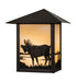 The majestic North Woods Moose is depicted on this handsome American Craftsman lantern style wall sconce. The fixture, handcrafted in the USA by Meyda artisans, is finished in Craftsman Brown and has Beige glass panels.