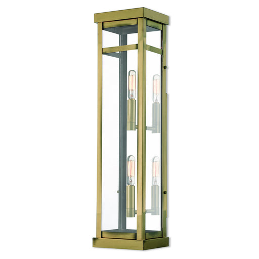 The dramatically simple shape and bold lines help define our Nyack wall lantern. Featured in a antique brass finish, this outdoor wall lantern has ...