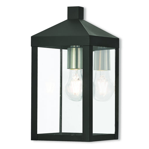 View full detailsLivex Lighting 20583-04 Two Light Outdoor Wall Lantern, Black w/ Brushed Nickel Cluster and Polished Chrome Stainless Steel