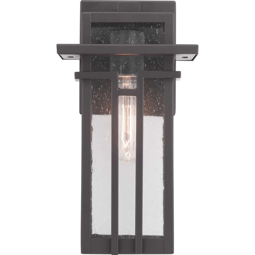 Geometric details in Boxwood's design enhance Craftsman-inspired architecture. The one-light small wall lantern features clear seeded glass and fin...