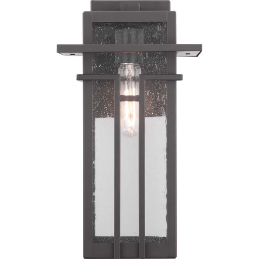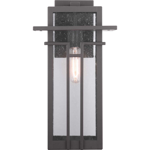 Geometric details in Boxwood's design enhance Craftsman-inspired architecture. The one-light medium wall lantern features clear seeded glass and fi...