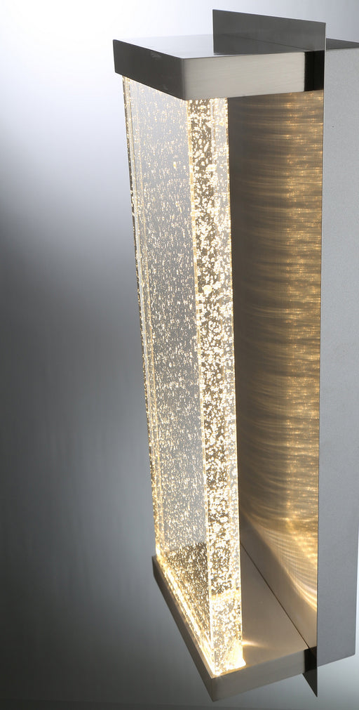 Paradiso,Outdr,Led Wllmnt,LrgDetails:Product Type: Wall Mt./FlushFinish: Satin NickelShade: Clear BubbleMeasurements:Width / Dia: 5.50"Height: 14.5...
