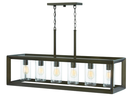 View full detailsKichler 49835AZ Six Light Outdoor Linear Chandelier, Architectural Bronze