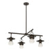 The iconic Mason Collection welcomes a new entryâthe Mason Outdoor 4-Light Pendant. As we all look to expand our living spaces, the Mason 4-Light is the perfect pendant for outdoor dining or lounge area that is closed on 3 sides and has a solid ceiling (not trellis). Bi-secting, perpendicular aluminum bars create a balanced look with functional lighting for the outdoor space. Stem Kit included.