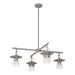 The iconic Mason Collection welcomes a new entryâthe Mason Outdoor 4-Light Pendant. As we all look to expand our living spaces, the Mason 4-Light is the perfect pendant for outdoor dining or lounge area that is closed on 3 sides and has a solid ceiling (not trellis). Bi-secting, perpendicular aluminum bars create a balanced look with functional lighting for the outdoor space. Stem Kit included.