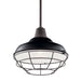 The caged design of the Pier 12 inch 1 light outdoor convertible pendant/flush mount in Black offers the vintage outdoorsy look, while the bright white interior enhances and reflects the light for essential nighttime illumination.