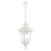 From the Oxford outdoor lantern collection, this traditional cast aluminum three-light large pendant lantern design will add curb appeal to any home. It features handsome, antique styling and decorative elements. Clear water glass casts an appealing light and lends to its vintage charm. The canopy, chain and ornamental details are all in a textured white finish. With superb craftsmanship and affordable price, this fixture is sure to tastefully indulge your senses.