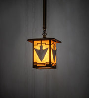 An arrowhead wrapped in rawhide is featured on this Native American inspired lantern pendant. The fixture is finished in Antique Copper, has Honey art glass panels, and is handcrafted in the USA by Meyda artisans.