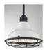 The one-light small Newbridge pendant is damp rated and can be employed for both indoor and covered outdoor lighting applications. The Newbridge is 9.75 inches in diameter. It is your choice to add the included cage that will realize a true retro - industrial appearance, complemented by the Gloss White shade and Textured Black finish, the light is dispersed by the white reflector. The Newbridge small pendant can be used as a single light source or can be used in multiples.