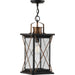 Transform your home into a warm and cozy dream with the friendly farmhouse-style of this hanging lantern. A rustic X-brace design decorates each side of the charming lantern silhouette. Clear seeded glass panes add an extra pop of rustic personality. An antique bronze finish complemented with antique copper accents adds warmth and character as the lantern infuses your home with gentle illumination.