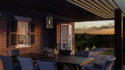 The clean lines and hand-riveted accents make the Westover lantern collection a modern industrialist's dream. A long rectangular framework provides an unobstructed view of the lantern's sleek interior. The choice of earth black, antique brass, industrial bronze, stainless steel, or western bronze further enhances the versatility of this refined collection. The earth black, stainless steel, and western bronze finishes show off clear beveled glass panels while the antique brass and industrial bronze options flaunt seedy glass.
