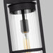 Clear fluted glass shades give the Alcona series a refined industrial look. The elegant square backplate and metal center ring provide a floating glass effect. The Alcona one light outdoor pendant fixture creates a warm and inviting welcome presentation for your home's exterior. Available in a handsome Black or Antique Bronze finish.
