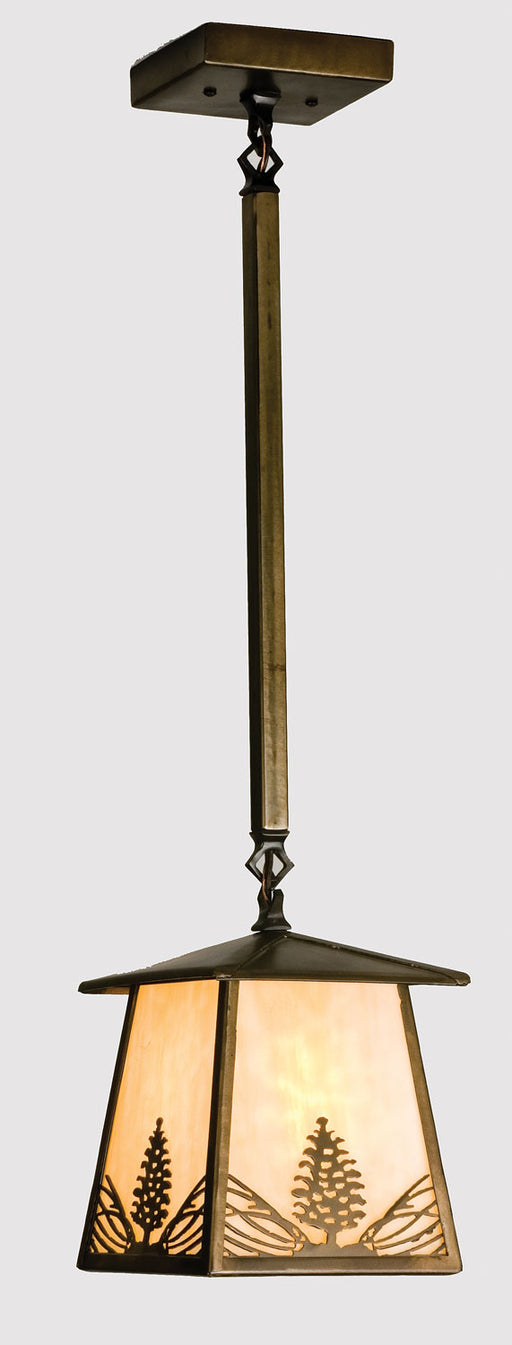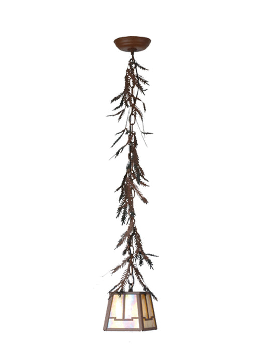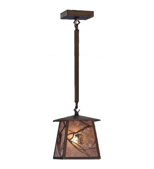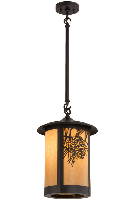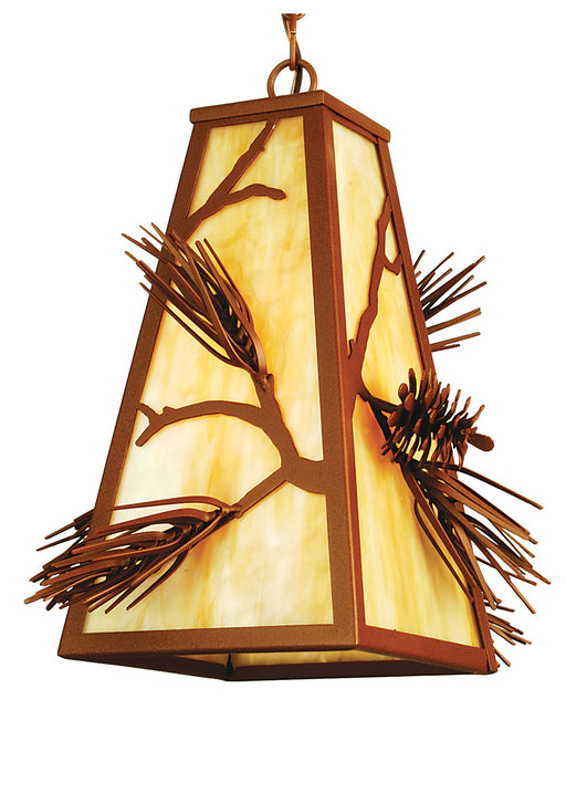 Pine Cone laden branches accent this handsome American Craftsman lantern style one light pendant. The fixture, handcrafted in the USA by Meyda arti...
