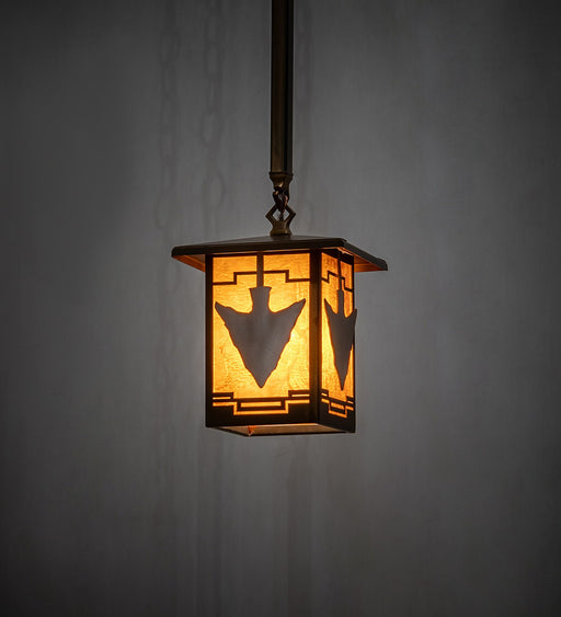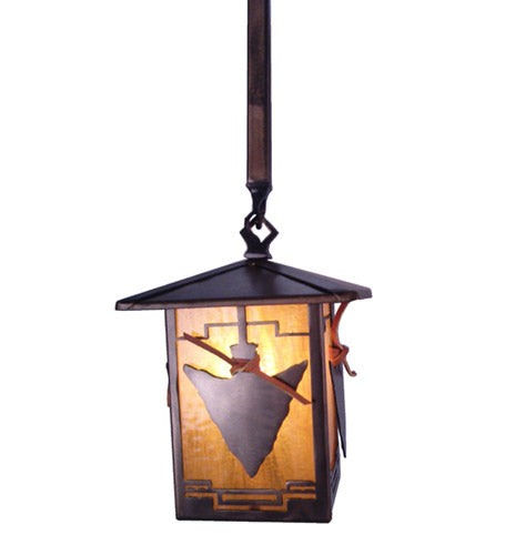 An arrowhead wrapped in rawhide is featured on this Native American inspired lantern pendant. The fixture is finished in Antique Copper, has Honey ...