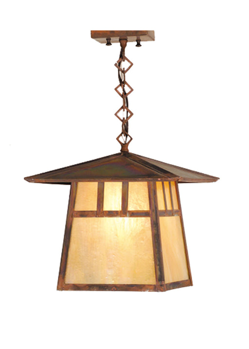 A Spider weaves it's magical web on the edge of this handsome American Craftsman lantern style ceiling pendant. The fixture, handcrafted in the USA...