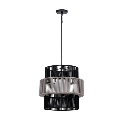 Details:Product Type: HangingFinish: BlackShade: Round Beige RopeRooms: Outside AreaMeasurements:Width / Dia: 18.00"Height: 21.75"Length: 18.00"Cha...