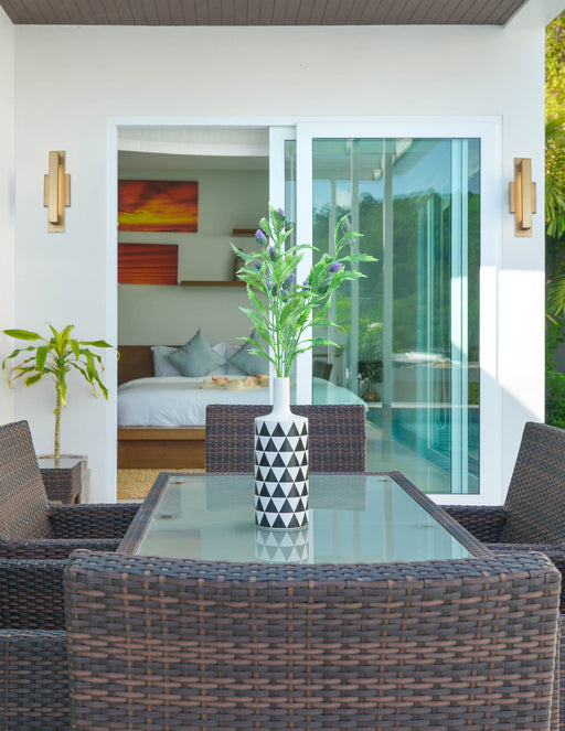 Details:Product Type: Wall Mt./FlushFinish: Matte BlackShade: Faux Porcelain ResinMeasurements:Width / Dia: 7.00"Height: 36.00"Extension: 7.50"Top ...