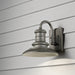 The Redding Station one light outdoor wall fixture in tarnished silver creates a warm and inviting welcome presentation for your home's exterior. All Aboard! Reminiscent of old railroad lighting, the Redding Station Collection warmly illuminates its surroundings with a vintage railroad vibe. The all-aluminum shades feature textured details. Redding Station is available in three finish options: Tarnished Silver, Restoration Bronze and Textured Black.