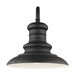 The Redding Station one light outdoor wall fixture in textured black enhances the beauty of your property, makes your home safer and more secure, and increases the number of pleasurable hours you spend outdoors. All Aboard! Reminiscent of old railroad lighting, the Redding Station Collection warmly illuminates its surroundings with a vintage railroad vibe. The all-aluminum shades feature textured details. Redding Station is available in three finish options: Tarnished Silver, Restoration Bronze and Textured Black.