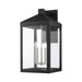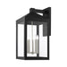 The dramatically simple shape and bold lines help define our Nyack wall lantern. Featured in a black finish with brushed nickel accents, this outdoor wall lantern has panels of clear glass.