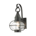 The Newburyport outdoor medium single-light wall lantern boasts classic nautical and railway styling. This piece features a beautiful hand-blown clear glass globe and a charcoal finish over the hand crafted solid brass construction. With its easy installation and low upkeep requirements, this light will not disappoint.