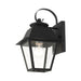 With its appealing black finish and clear glass, the stunning Mansfield collection will make an elegant addition to any outdoor space. Formed from solid brass & traditionally inspired, this downward hanging single-light outdoor small wall lantern is perfect for a driveway, back porch or entry way. Combining superb craftsmanship and affordable price, this fixture is sure to be a timeless addition to your home.