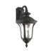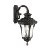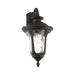 From the Oxford outdoor lantern collection, this traditional cast aluminum downward hanging single-light medium wall lantern design will add curb appeal to any home. It features a handsome, antique-style wall plate and decorative arm. Clear water glass casts an appealing light and lends to its vintage charm. The wall plate, arm and other details are all in a textured black finish. With superb craftsmanship and affordable price, this fixture is sure to tastefully indulge your senses.