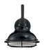 The one-light small Newbridge wall sconce is wet rated. It can be employed for both indoor and outdoor lighting applications. The Newbridge has a gooseneck arm extension that is 13.5 inches and a width of 9.75 inches. The choice to add the included cage will realize a true retro - industrial appearance, complemented by the Gloss and Textured Black finish, light is dispersed by the silver reflector.