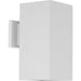 6" outdoor one-light wall square with heavy duty aluminum construction and die cast wall bracket. Powder coated finish. White finish.