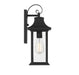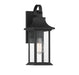 Create a stylish first impression outside your home with this Savoy House Hancock 1-light outdoor wall lantern. Crafted in a timeless classic style, it features a boldly sloped roof, shepherd's hook detailing and panes of clear seeded glass that ensures a beautiful, dramatic glow. A generously sized backplate helps to cover any holes left from replacing previous fixtures and the versatile black finish means that Hancock goes well with anything. Use this lantern beside your front and side doors or above your garage door. This fixture is 6.75" wide and 17.25" tall. It extends 7.5" from the wall. Uses one standard size light bulb of up to 60 watts (not included).