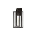 Clean lines, negative space, and a minimal rectangular backplate define the layered frame of the Amire sconce. Within the open, airy silhouette, slender off-white candles are encased by clear glass panels, optimizing illumination. The Textured Black finish brings a sense of modern elegance to any exterior. Amire is available as a 1-light sconce or a 2-light sconce in two sizes.