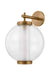 An elevated globe sconce, Marco combines curved glass and angular metalwork to create a modern, distinctive look for the outdoors. The lantern-style hanging design features a large, clear glass orb suspended from minimalist industrial fittings. Within the shade, a ribbed glass tube conceals the light source while adding a dynamic geometric layered effect. Marco is available in two sizes with Patina Brass or Bronze finish options.