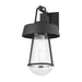 A clear glass shade rests within a Texture Black metal framework. The clean lines and smooth silhouette make a modern statement. Available as a one- or two-light option, Brady is a stylish way to add a warm glow to a variety of outdoor spaces.