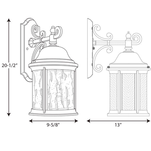 View full detailsProgress Lighting P5651-20 Three Light Large Wall Lantern, Antique Bronze