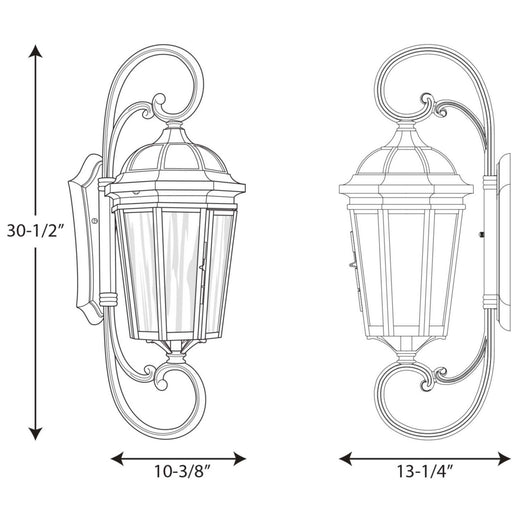 View full detailsProgress Lighting P560016-031 Three Light Large Wall Lantern, Black