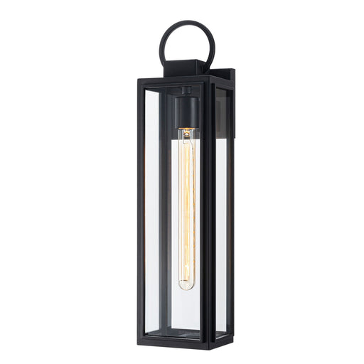 This exterior wall light features a rectangular design with a sturdy Matte Black metal frame and clear glass panels, allowing the bulb to be fully ...