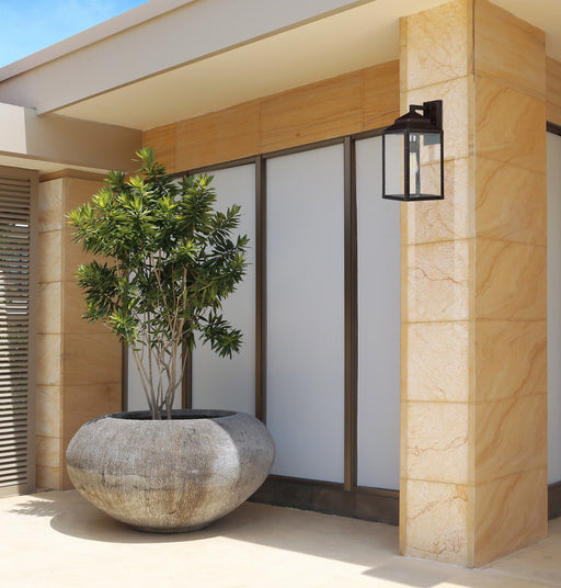 Decorate your favorite outdoor spaces to bring a sense of style Al Fresco! Rustic bronze finish with Clear glass.Details:Product Type: Wall MountFi...
