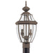 The Lancaster two light outdoor post top in antique bronze has a way of sparkling against glass to create a warm and inviting welcome, and is a classic example of traditional design. Clear curved beveled glass is paired with one of four beautiful finish options including Polished Brass, Black, Antique Bronze and Antique Brushed Nickel. The assortment includes small, medium and large one-light outdoor wall lanterns, two-light outdoor wall lantern, three-light outdoor wall lantern, two-light and three-light outdoor post lanterns and a three-light outdoor pendant.