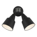 The Flood Light two light outdoor spot in black creates a warm and inviting welcome presentation for your home's exterior. Our flood lights are designed with safety as a top priority. Choose from open glass PAR38s or directional BR40s, both with swivel design to direct illumination where you need it.