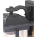 Distinctive forms with ancient roots are featured in this small wall lantern from the Abbott Collection. Transparency, depth and dimension are all on display to highlight the clear seeded glass and sweeping details within the Antique Bronze frame.