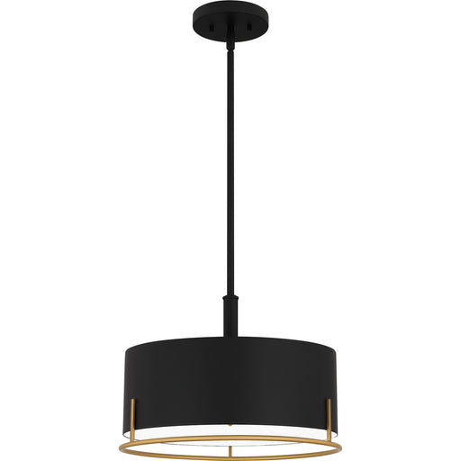 Quorum 8013-5980 One Light Pendant, Matte Black/Aged Brass