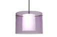 The Pahu is a distinctive double-glass pendant, with an inner opal cylinder centered within a transparent outer glass. Our Trans-Amethyst colored blown glass complements the soft white Opal cased glass, which can suit any classic or modern decor. Opal has a very tranquil glow that is pleasing in appearance, as the Trans-Amethyst glass sparkles with the accents from that glow. The smooth satin finish on the opalâ≢s outer layer is a result of an extensive etching process. This blown glass combination is handcrafted by a skilled artisan, utilizing century-old techniques passed down from generation to generation. The stem pendant fixture is equipped with an adjustable telescoping section, 4 connectable stem sections (3", 6", 12", and 18") and low Profile flat monopoint canopy. These stylish and functional luminaries are offered in a beautiful brushed Bronze finish.