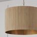 Artisan texture meets mid-century modern style in the Donovan Pendant. The White Wash fluted mango wood shade evokes a natural elegance, while the Matte Brass interior adds a warm glow.