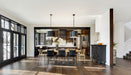 The Alston Collection shines with it's distinctive chunky metal chain and varying link sizes. These metal fixtures work well above work well in any kind of space In addition to its simple lines and oversized rectangular chain, The Alston Collection sports a versatile two-tone finish.