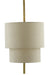 A study in simplicity, the Combermere Chandelier has a pared-down profile that makes it one of our most versatile designs. Made of metal in an antique brass finish, the gold chandelier has stacked shades made of linen.