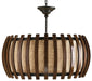 Expressing a mid-century modern paradigm, the Dado Pendant has a rounded cage of a body made of softly curved vertical slats in a gleaming polished fruitwood finish. The wood pendant surrounds a rustic but stylish putty burlap diffuser that softens the fixture's glow.